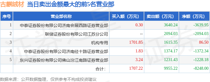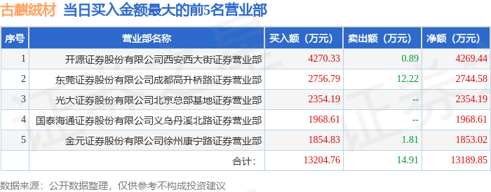 证券之星消息,沪深交易所2025年11月14日公布的交易公开信息显示,古麒绒材(001390)因日换手率达到20%的前5只证券登上龙虎榜。此次是近5个交易日内第1次上榜。