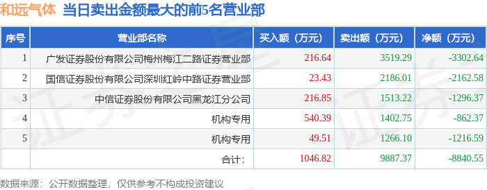 证券之星消息,沪深交易所2025年11月14日公布的交易公开信息显示,和远气体(002971)因日跌幅偏离值达到7%的前5只证券登上龙虎榜。此次是近5个交易日内第1次上榜。