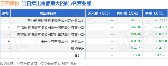 证券之星消息,沪深交易所2025年11月14日公布的交易公开信息显示,三元股份(600429)因有价格涨跌幅限制的日收盘价格跌幅偏离值达到7%的前五只证券登上龙虎榜。此次是近5个交易日内第3次上榜。