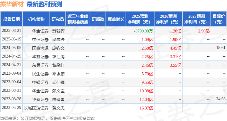 以下是详细的盈利预测信息: