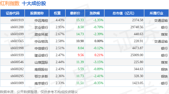 红利指数(000015)十大成份股详情如下: