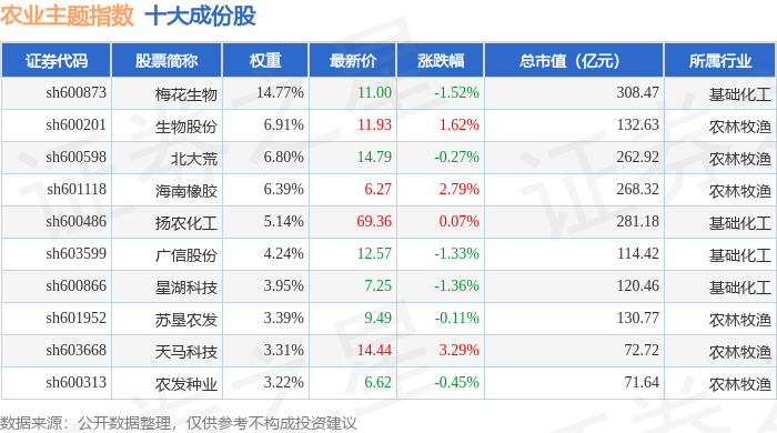 农业主题(000122)指数十大成份股详情如下: