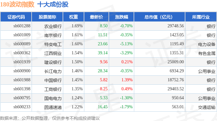 资金流向方面,180波动(000129)指数成份股当日主力资金净流出合计46.67亿元,游资资金净流入合计14.15亿元,散户资金净流入合计32.52亿元。成份股资金流向详情见下表: