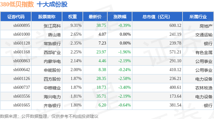 证券之星消息,11月14日,380低贝(000138)指数报收于8348.38点,跌0.77%,成交250.69亿元,换手率1.18%。当日该指数成份股中,上涨的有22家,新泉股份以1.88%的涨幅领涨,下跌的有71家,晋控煤业以3.46%的跌幅领跌。