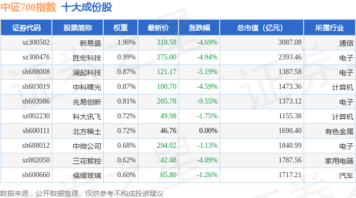 资金流向方面,中证700(000907)指数成份股当日主力资金净流出合计359.76亿元,游资资金净流入合计107.52亿元,散户资金净流入合计252.24亿元。成份股资金流向详情见下表:
