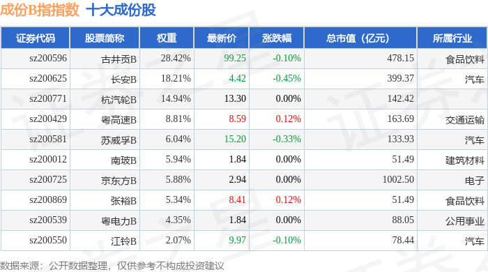 成份B指(399003)指数十大成份股详情如下: