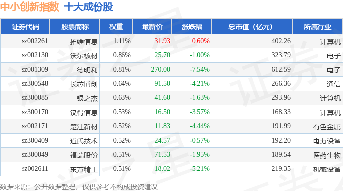 近10日内中小创新(399015)指数成份股做了调整,新纳入了1只股票,剔除了1只股票。