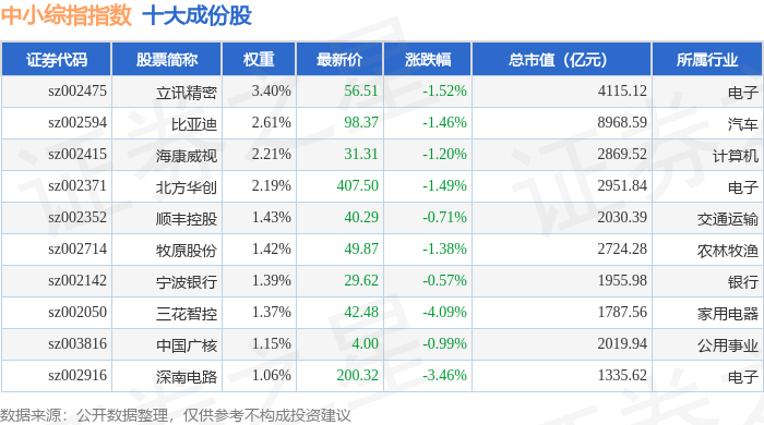 证券之星消息,11月14日,中小综指(399101)指数报收于14337.49点,跌1.24%,成交4174.57亿元,换手率3.38%。当日该指数成份股中,上涨的有361家,荣盛发展以10.17%的涨幅领涨,下跌的有568家,摩恩电气以10.01%的跌幅领跌。