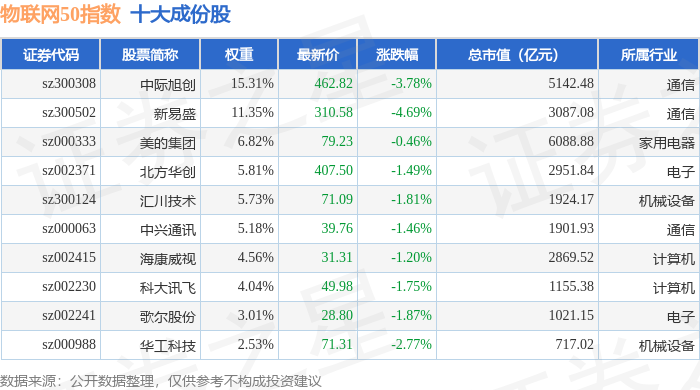 资金流向方面,物联网50(399285)指数成份股当日主力资金净流出合计70.71亿元,游资资金净流入合计28.08亿元,散户资金净流入合计42.63亿元。成份股资金流向详情见下表:
