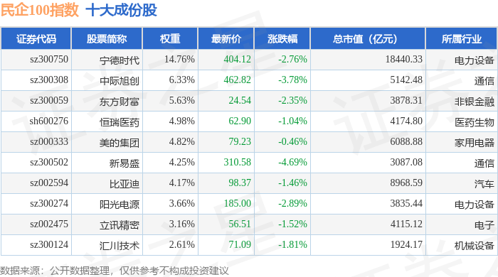 资金流向方面,民企100(399362)指数成份股当日主力资金净流出合计140.48亿元,游资资金净流入合计59.11亿元,散户资金净流入合计81.37亿元。成份股资金流向详情见下表: