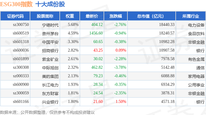 资金流向方面,ESG300(399378)指数成份股当日主力资金净流出合计223.8亿元,游资资金净流入合计92.73亿元,散户资金净流入合计131.07亿元。成份股资金流向详情见下表: