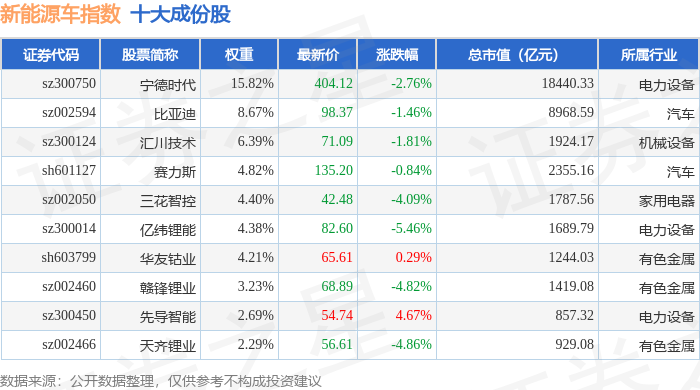 新能源车(399417)指数十大成份股详情如下: