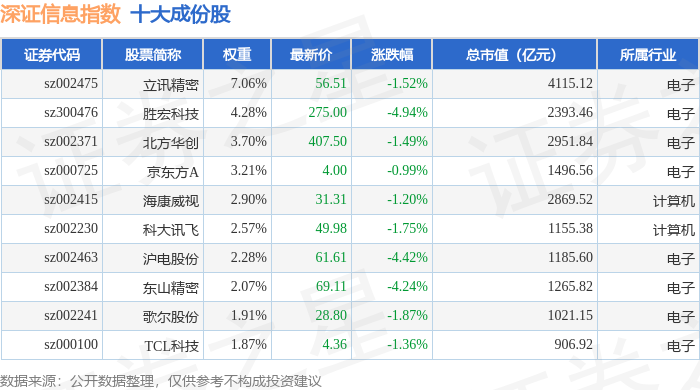 证券之星消息,11月14日,深证信息(399620)指数报收于5319.59点,跌2.58%,成交1393.26亿元,换手率2.0%。当日该指数成份股中,上涨的有11家,和而泰以5.91%的涨幅领涨,下跌的有128家,江波龙以10.77%的跌幅领跌。