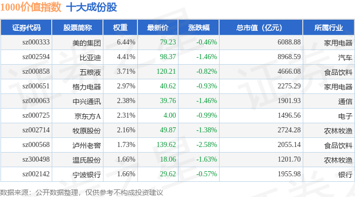 证券之星消息,11月14日,1000价值(399631)指数报收于2269.74点,跌1.19%,成交1433.62亿元,换手率1.42%。当日该指数成份股中,上涨的有76家,联化科技以10.0%的涨幅领涨,下跌的有238家,万向钱潮以9.92%的跌幅领跌。