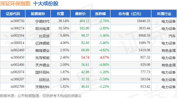证券之星消息,11月14日,深证环保(399638)指数报收于7955.62点,跌2.37%,成交1083.18亿元,换手率2.11%。当日该指数成份股中,上涨的有8家,先导智能以4.67%的涨幅领涨,下跌的有30家,湖南裕能以6.42%的跌幅领跌。