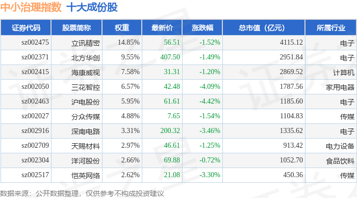 中小治理(399650)指数十大成份股详情如下: