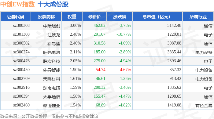 证券之星消息,11月14日,中创EW(399660)指数报收于2704.85点,跌2.35%,成交2031.43亿元,换手率1.45%。当日该指数成份股中,上涨的有13家,先导智能以4.67%的涨幅领涨,下跌的有87家,江波龙以10.77%的跌幅领跌。