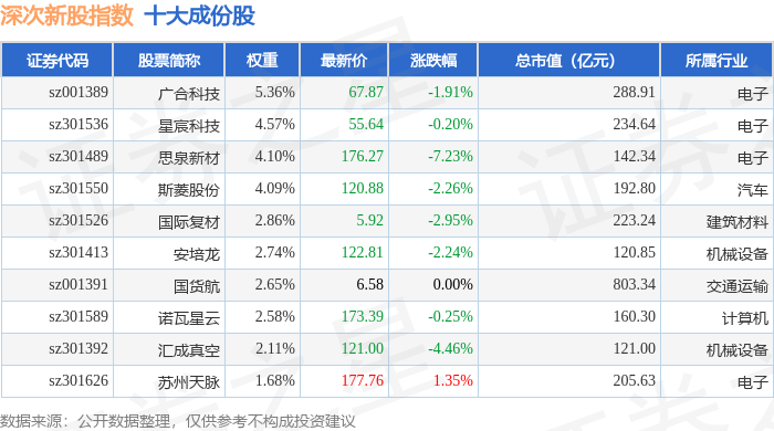 深次新股(399678)指数十大成份股详情如下: