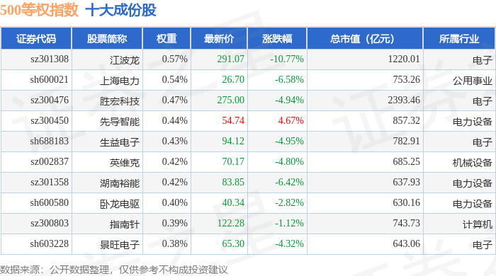 证券之星消息,11月14日,500等权(399982)指数报收于8893.71点,跌1.45%,成交3104.85亿元,换手率1.82%。当日该指数成份股中,上涨的有98家,中集集团以9.96%的涨幅领涨,下跌的有381家,佰维存储以10.96%的跌幅领跌。