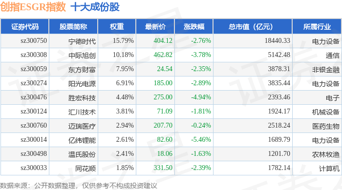 创指ESGR(470028)指数十大成份股详情如下: