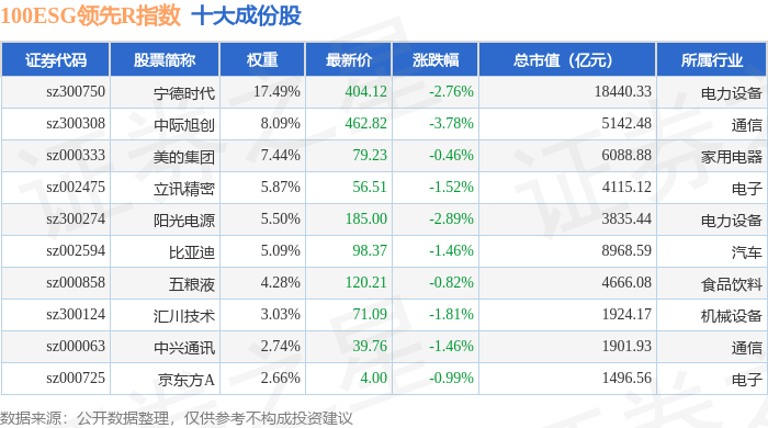 100ESG领先R(470030)指数十大成份股详情如下:
