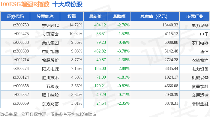 100ESG增强R(470033)指数十大成份股详情如下: