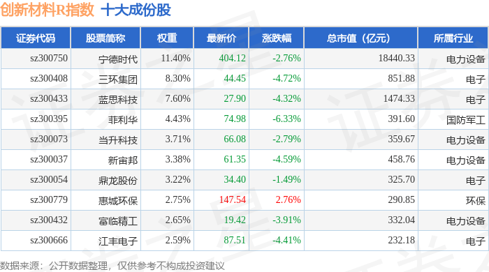 创新材料R(470039)指数十大成份股详情如下: