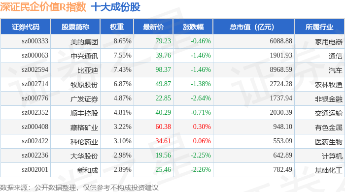 资金流向方面,深证民企价值R(470072)指数成份股当日主力资金净流出合计26.37亿元,游资资金净流入合计8.22亿元,散户资金净流入合计18.16亿元。成份股资金流向详情见下表: