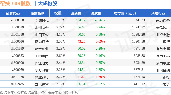资金流向方面,帮扶100R(480065)指数成份股当日主力资金净流出合计126.5亿元,游资资金净流入合计46.02亿元,散户资金净流入合计80.48亿元。成份股资金流向详情见下表: