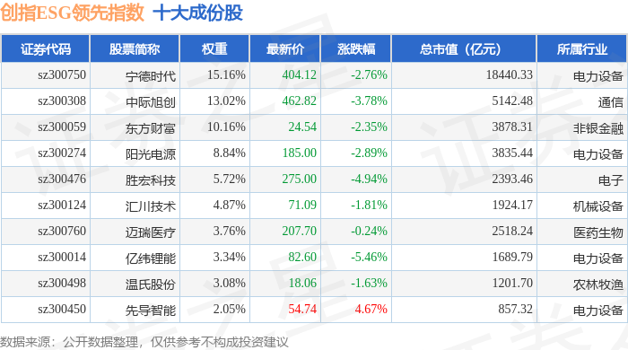 资金流向方面,创指ESG领先(970031)指数成份股当日主力资金净流出合计55.84亿元,游资资金净流入合计33.41亿元,散户资金净流入合计22.43亿元。成份股资金流向详情见下表: