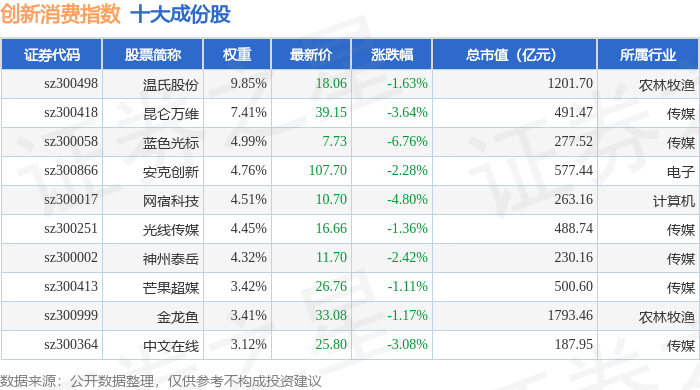 资金流向方面,创新消费(970041)指数成份股当日主力资金净流出合计21.88亿元,游资资金净流入合计8.51亿元,散户资金净流入合计13.37亿元。成份股资金流向详情见下表: