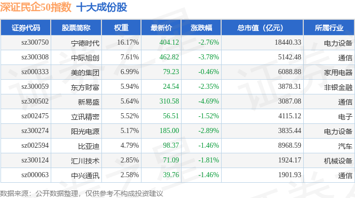 证券之星消息,11月14日,深证民企50(970057)指数报收于3314.3点,跌2.37%,成交1140.88亿元,换手率1.44%。当日该指数成份股中,上涨的有4家,杰瑞股份以8.21%的涨幅领涨,下跌的有46家,亿纬锂能以5.46%的跌幅领跌。