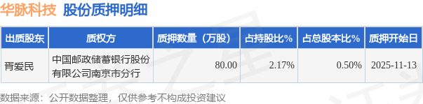 证券之星消息,华脉科技(603042)11月14日公开信息显示,股东胥爱民向中国邮政储蓄银行股份有限公司南京市分行合计质押80.0万股,占总股本0.5%。质押详情见下表: