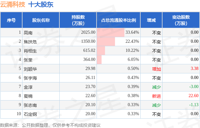 根据云涌科技2025年三季报公布的十大股东详情如下: