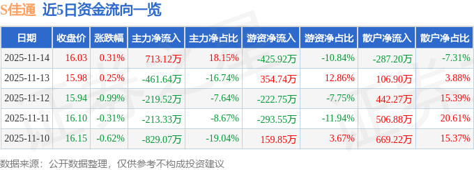 11月14日的资金流向数据方面,主力资金净流入713.12万元,占总成交额18.15%,游资资金净流出425.92万元,占总成交额10.84%,散户资金净流出287.2万元,占总成交额7.31%。