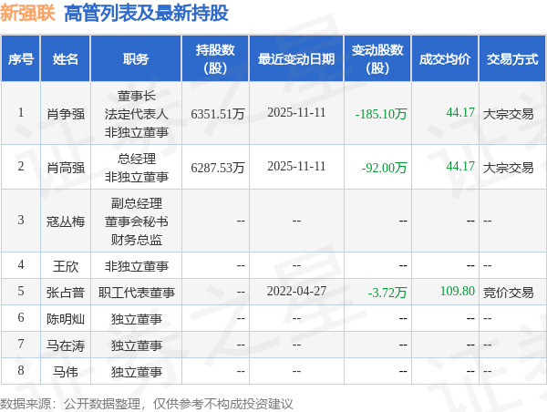 新强联的高管列表及最新持股情况如下: