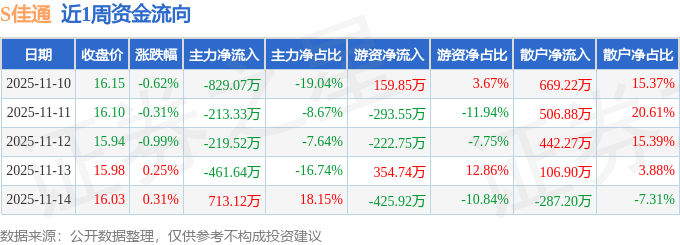 资金流向数据方面,本周S佳通主力资金合计净流出1010.44万元,游资资金合计净流出427.64万元,散户资金合计净流入1438.07万元。本周资金流向一览见下表: