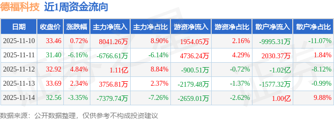 资金流向数据方面,本周德福科技主力资金合计净流入8760.8万元,游资资金合计净流入951.29万元,散户资金合计净流出9712.09万元。本周资金流向一览见下表:
