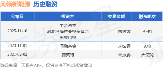 证券之星消息,根据天眼查APP于11月10日公布的信息整理,上海风领新能源有限公司A+轮融资,融资额未披露,参与投资的机构包括中金资本,河北沿海产业投资基金,承辰创投。