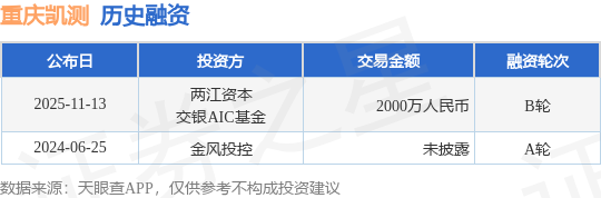 证券之星消息,根据天眼查APP于11月13日公布的信息整理,重庆凯测试验设备股份有限公司B轮融资,融资额2000万人民币,参与投资的机构包括两江资本,交银AIC基金。