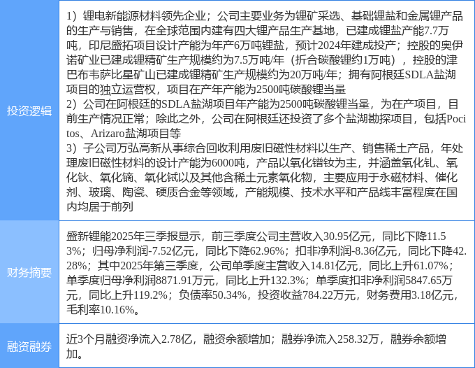 该股为锂电池,盐湖提锂,镨钕概念热股,当日锂电池概念上涨2.3%,盐湖提锂概念上涨2.29%,镨钕概念上涨1.96%。
