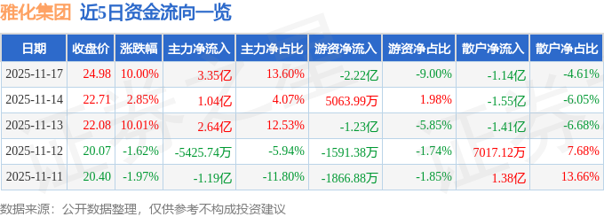 11月17日的资金流向数据方面,主力资金净流入3.35亿元,占总成交额13.6%,游资资金净流出2.22亿元,占总成交额9.0%,散户资金净流出1.14亿元,占总成交额4.61%。