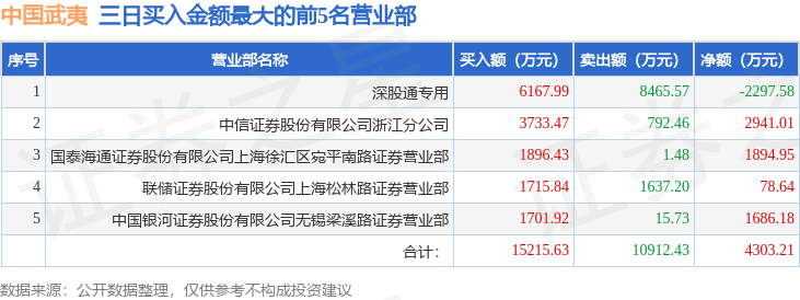 证券之星消息,沪深交易所2025年11月17日公布的交易公开信息显示,中国武夷(000797)因连续三个交易日内,涨幅偏离值累计达到20%的证券登上龙虎榜。此次是近5个交易日内第1次上榜。