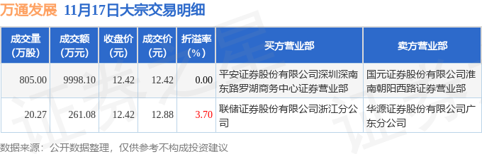 证券之星消息,11月17日万通发展发生大宗交易,交易数据如下: