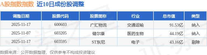 近10日内A股指数(000002)成份股做了调整,新纳入了2只股票,剔除了1只股票。
