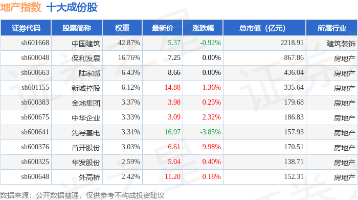 近10日内地产指数(000006)成份股做了调整,新纳入了1只股票。