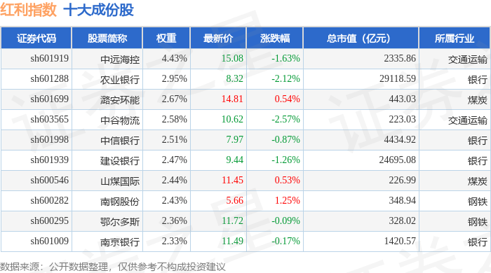 证券之星消息,11月17日,红利指数(000015)报收于3185.68点,跌0.37%,成交277.94亿元,换手率0.26%。当日该指数成份股中,上涨的有17家,百隆东方以2.46%的涨幅领涨,下跌的有31家,中谷物流以2.57%的跌幅领跌。