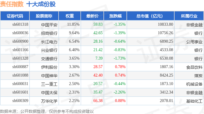 责任指数(000048)十大成份股详情如下: