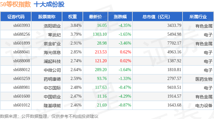 证券之星消息,11月17日,50等权(000050)指数报收于2423.07点,跌0.92%,成交1118.05亿元,换手率0.28%。当日该指数成份股中,上涨的有13家,中航沈飞以2.07%的涨幅领涨,下跌的有36家,洛阳钼业以4.35%的跌幅领跌。