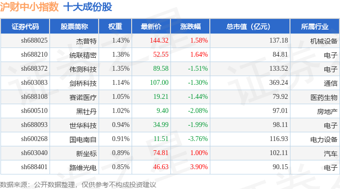 沪财中小(000091)指数十大成份股详情如下: